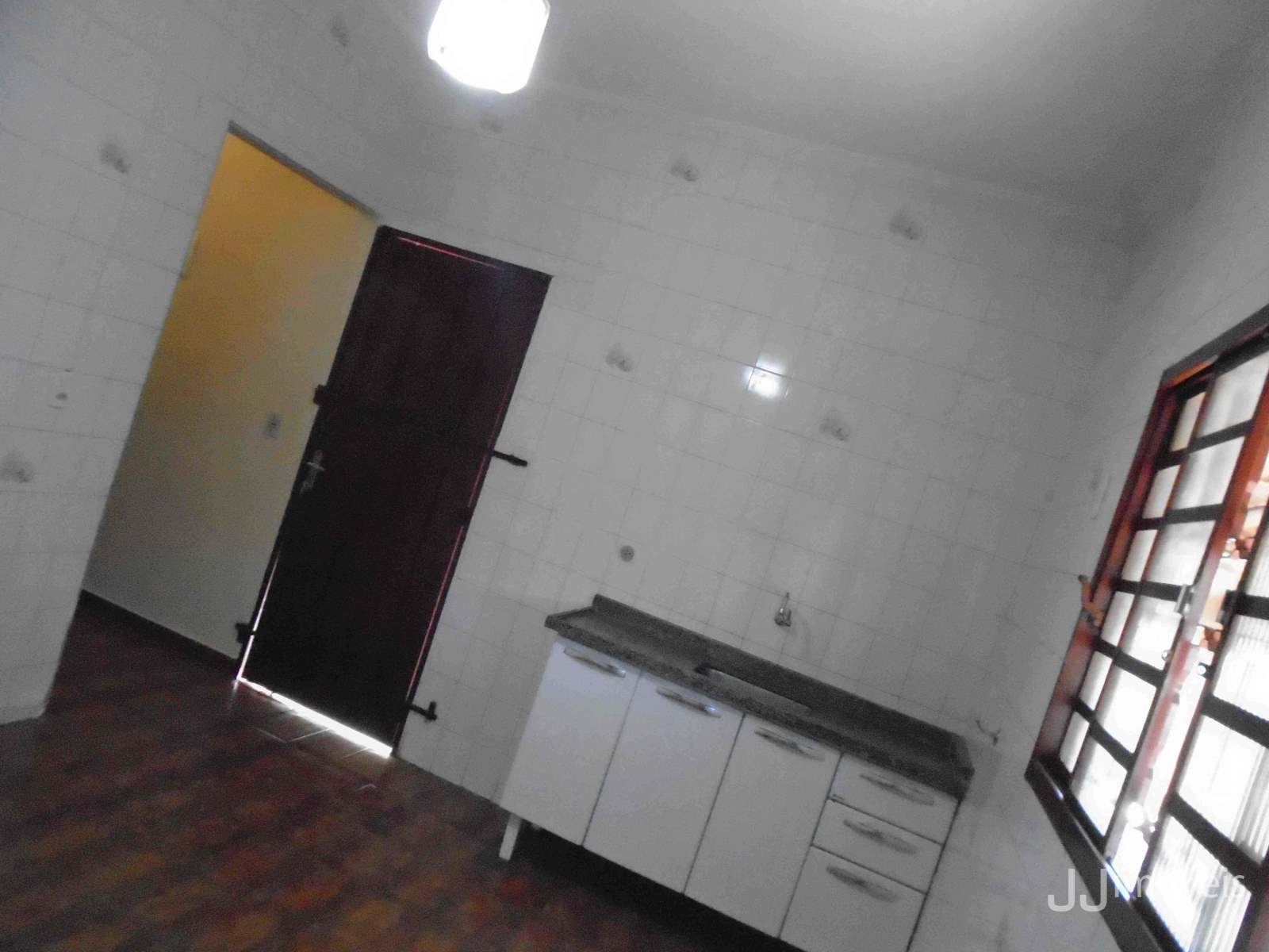 2 dorm, sala, cozinha, WC social, área de serviço, varanda na frente, quintal de terra, quarto de despejo, garagem